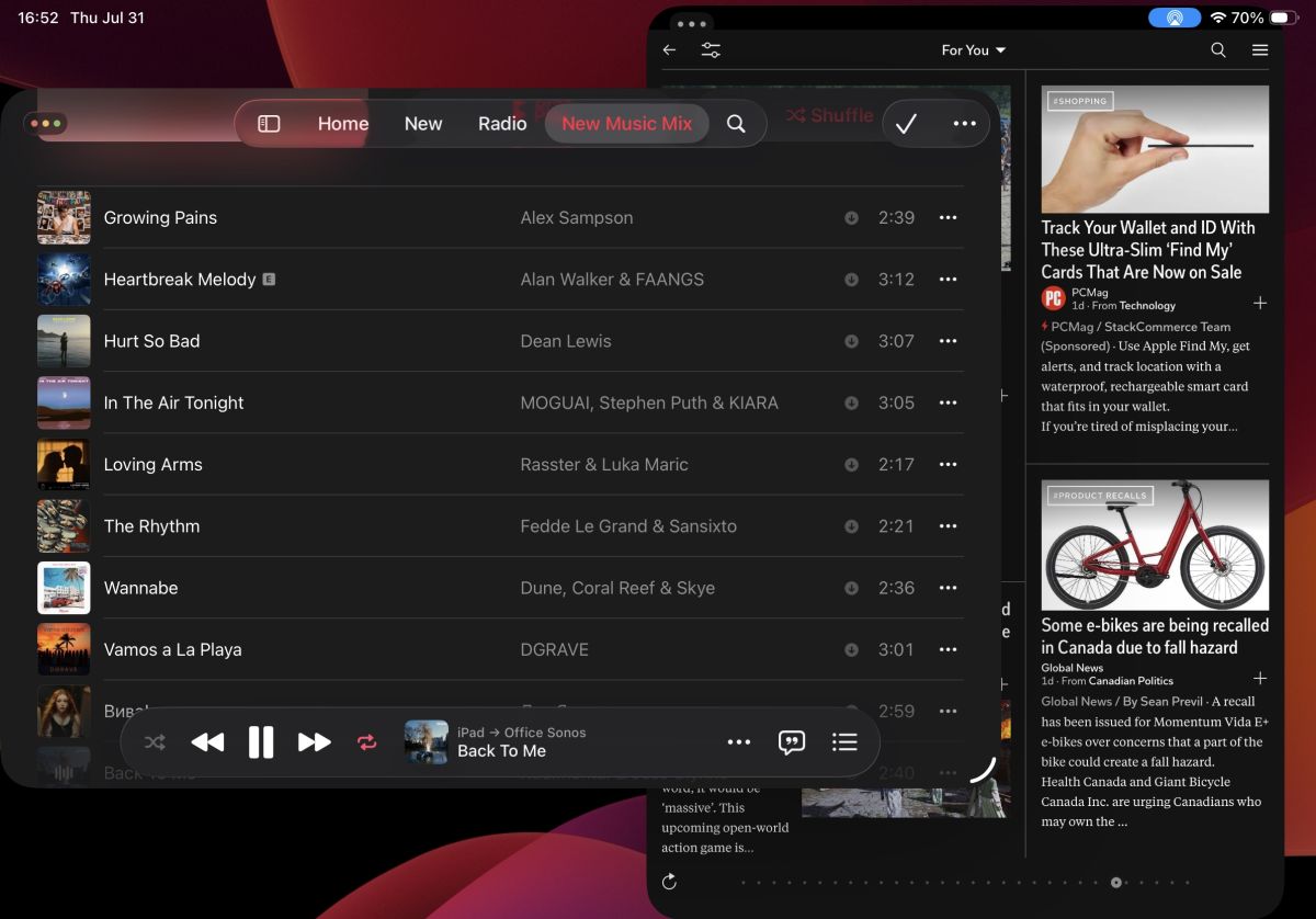 Я на телефоне не пробовал новую фишку автомикса в приложении Музыки, а на iPad сейчас запустил, и она работает круто. Сейчас пишу заметку, слушаю музыку и она автоматически миксом переходит на следующий трек.