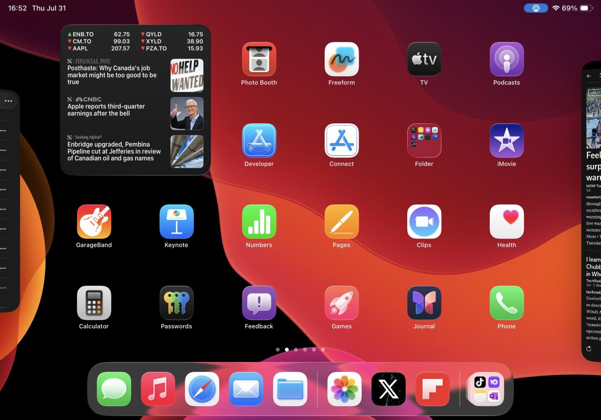 Самое интересное для меня было - возможность использовать iPad приложения в виде окон. У меня старый iPad Pro, кажется второго поколения. Ему уже 4 года и это ещё версия до того, когда стали ставить М процессоры. Я боялся, что новая ОС будет тормозить на этом процессоре, но пока всё работает гладко.