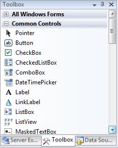 Доступ к компонентам .NET можно получить из панели Toolbox (рис. 5.10). Если ее не видно, то нужно выполнить в меню команду View | Toolbox.