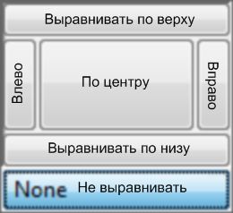 Щелкая по секторам, вы выравниваете свой компонент на поверхности компонента контейнера, на котором он стоит. Например, если ваш компонент стоит на поверхности формы, и вы щелкнете по самому верхнему сектору для выравнивания по верху, то ваш компонент растянется вдоль верхней кромки окна, как это делают меню и панели в большинстве приложений. Таким способом очень просто и удобно создавать мощные и гибкие интерфейсы.