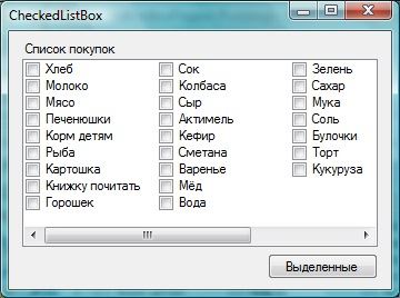 На рис. 5.15 показано окно, в котором в виде списка с флажками CheckBox при-веден список покупок. Подразумевается, что пользователь идет с ноутбуком или другим устройством по гипермаркету и отмечает по своему списку, что он купил, а что нет.