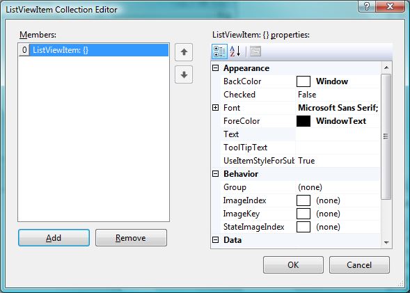 Если нужно настроить несколько свойств нового элемента, то удобнее и эффек-тивнее создать объект класса ListViewItem и передать этот объект методу Add(). Например, как в следующем примере: